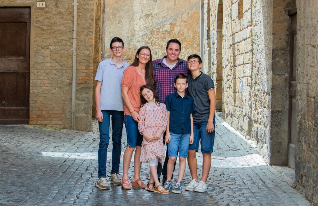 We have four children, Davide (12), Matteo (11), Nico (8) and Gabriella (6).